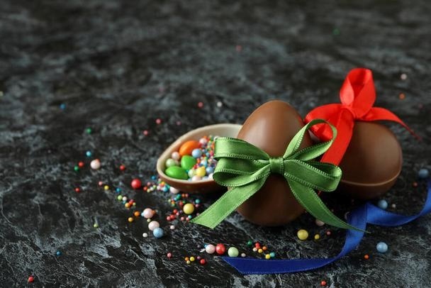 - Обгорніть кожне шоколадне яйце уздовж шва красивою стрічкою, зав'яжіть її бантом.