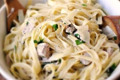 - ️Додаємо відварені макарони, проварюємо разом ще хвилинку разом з соусом.