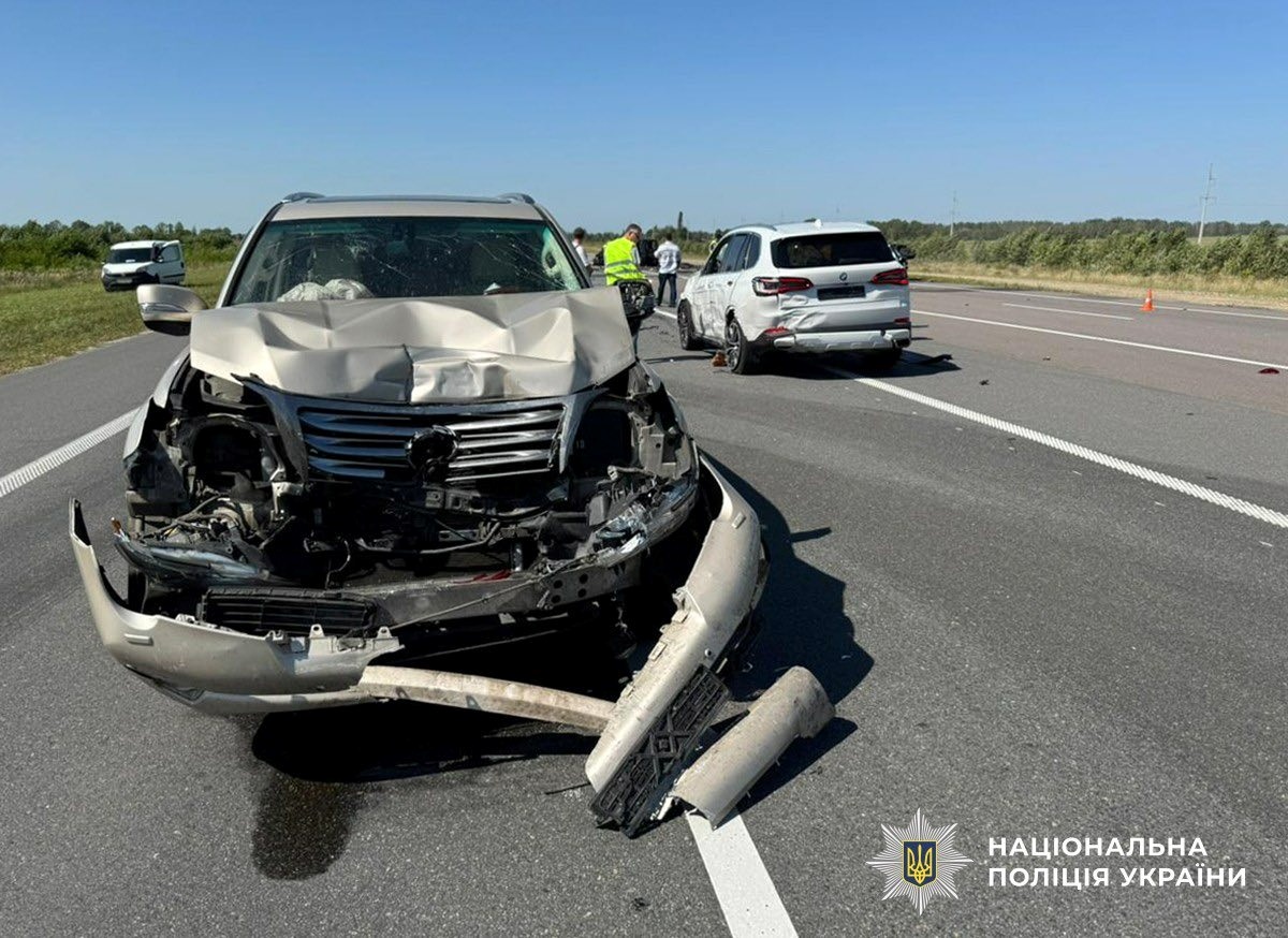 За попередньою інформацією, 35-річний водій позашляховика Renault Duster, житель Звягельщини, не впорався з керуванням, виїхав на смугу зустрічного руху, де сталося зіткнення з автомобілем Volkswagen, за кермом якого перебував 44-річний житель Київщини. Неконтрольований рух транспортних засобів призвів до подальшого їхнього зіткнення ще з двома автомобілями – BMW та Lexus.