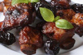 - Ребра промийте, обсушіть паперовим рушником і наріжте порційними шматками.
