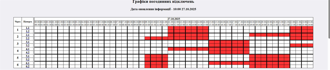 Самих графіків на сайті обленерго поки немає. Ми моніторимо ситуацію і у разі змін повідомлятимемо.