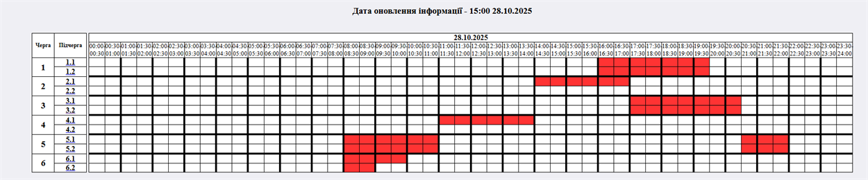 6 черга 1, 2 підчерги – з 8.00 - 11.00.