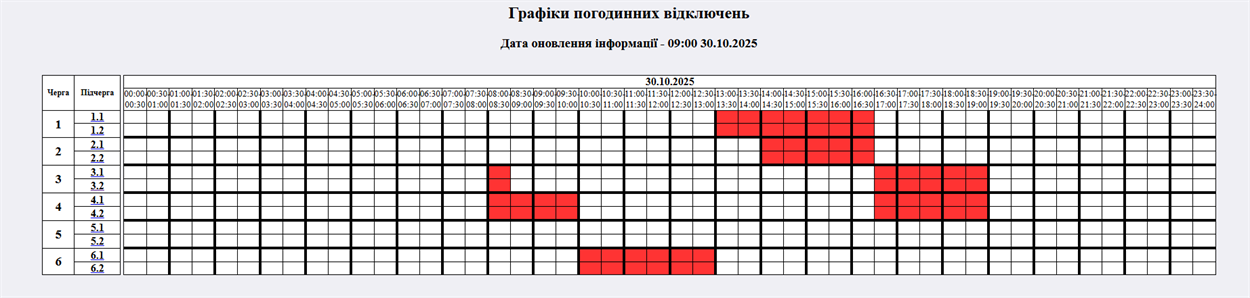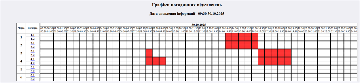 1.1, 1.2 – світла не буде з 13.00 - 16.30.