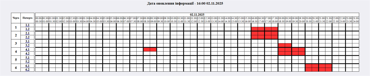 - Черга 2.1, 2.2: 16:00 - 18:00