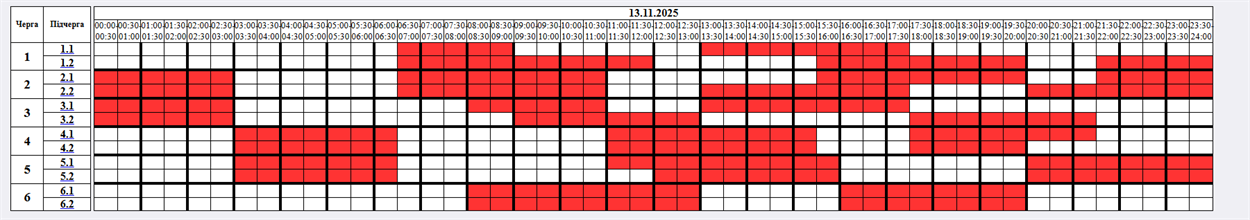 Детальний розклад відключень за чергами