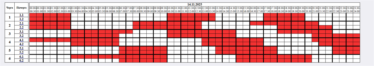 14 листопада 2025 року енергетичні компанії України продовжують застосовувати погодинні обмеження електропостачання. Щоб допомогти українцям підготуватися до відключень, публікуємо детальний графік обмежень для всіх черг споживання.