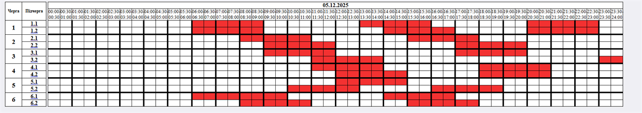 - Черга 6.1: 06:00 - 10:00, 14:00 - 17:00