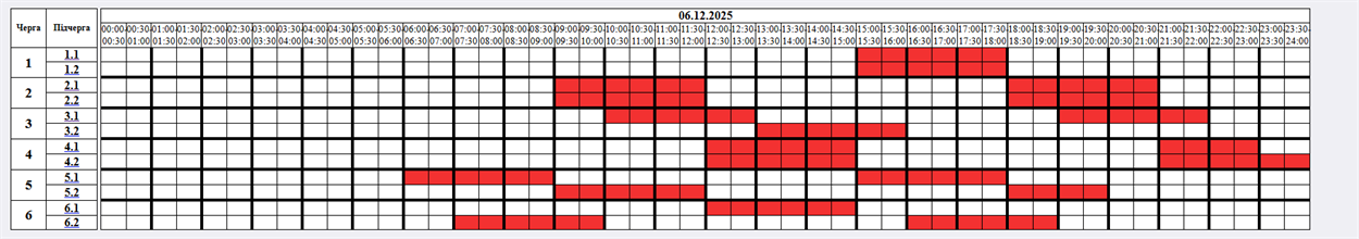 - Черга 4.1: 12:00 - 15:00, 21:00 - 23:00