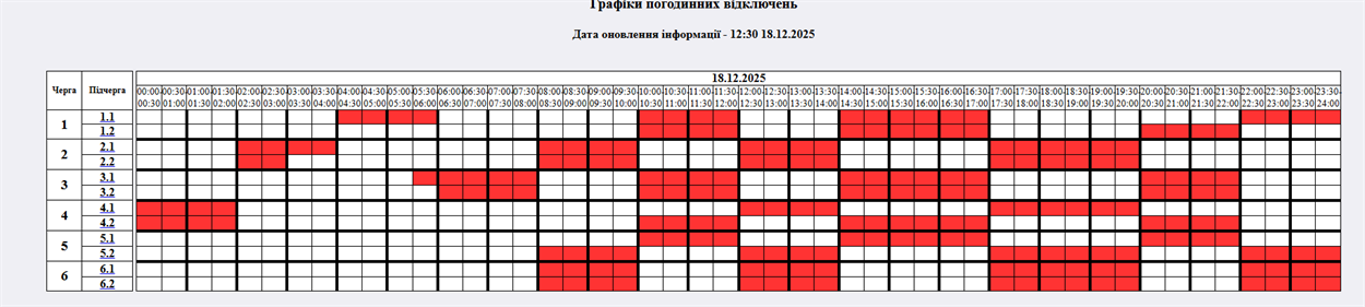 На 18.12.2025р. по команді НЕК "Укренерго" буде застосовано: