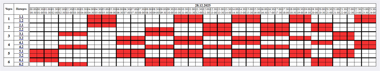 На 28.12.2025р. по команді НЕК "Укренерго" буде застосовано: