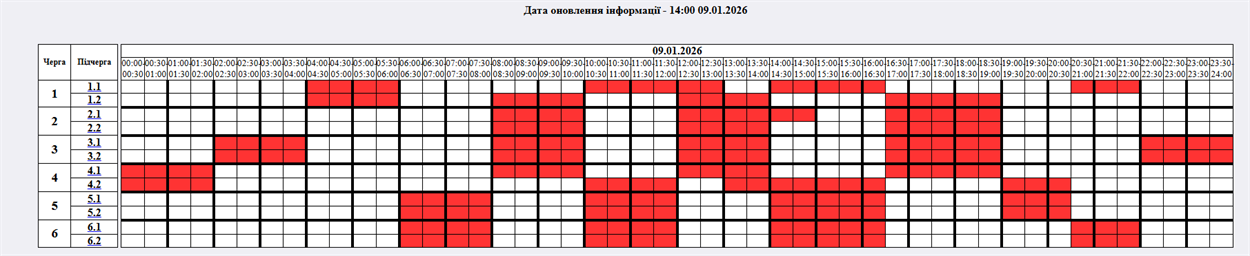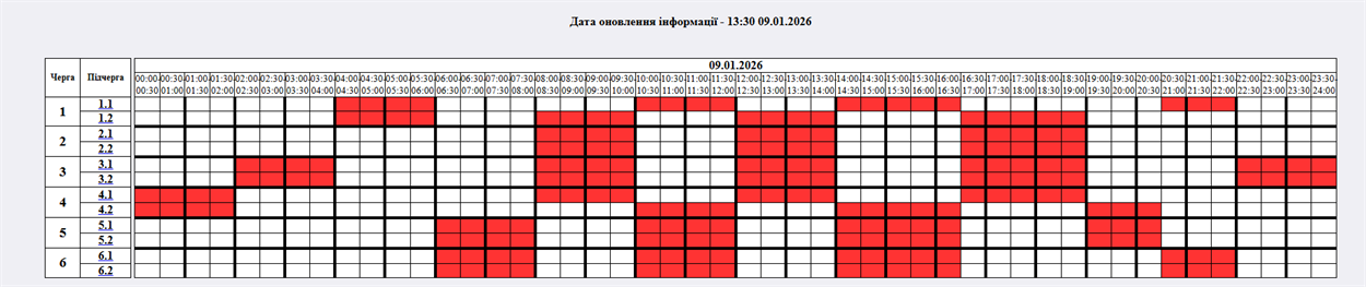 На 09.01.2026р. по команді НЕК "Укренерго" буде застосовано: