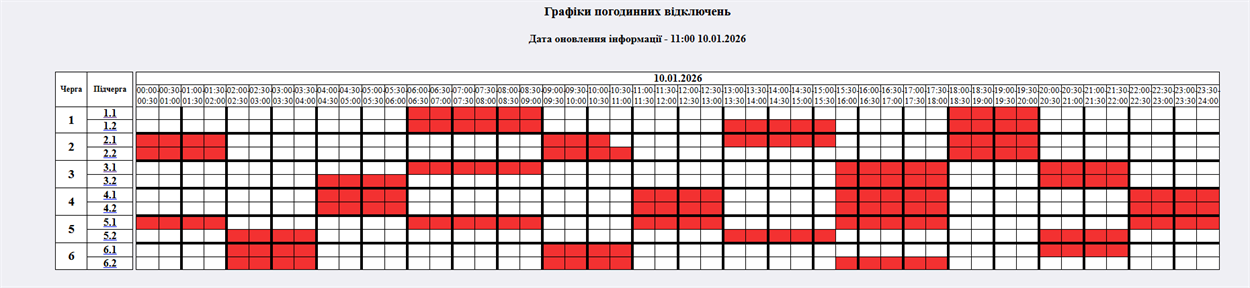 Графік відключень світла у суботу, 10 січня.