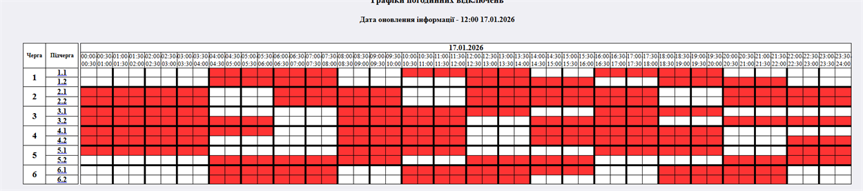 На 11:30 17.01.2026р. НЕК "Укренерго" змінив застосування кількості черг: