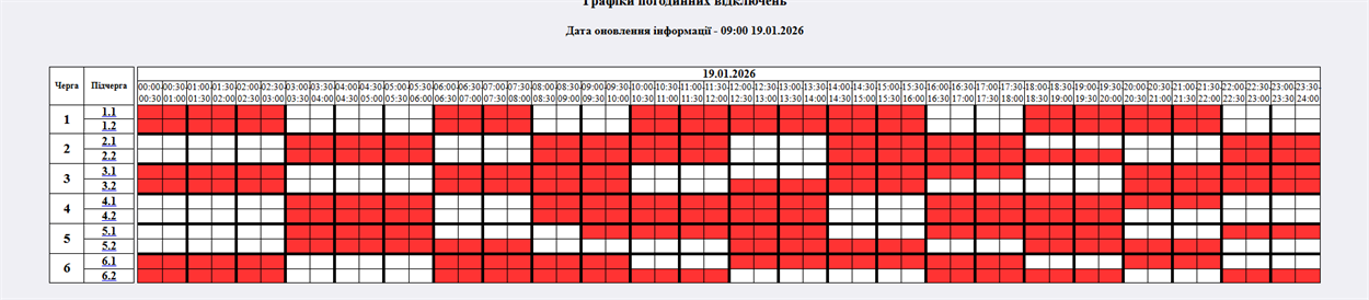 На 08:30 19.01.2026р. НЕК "Укренерго" змінив застосування кількості черг: