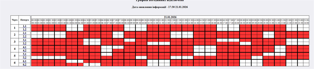 На 17:30 21.01.2026р. НЕК "Укренерго" змінив застосування кількості черг: