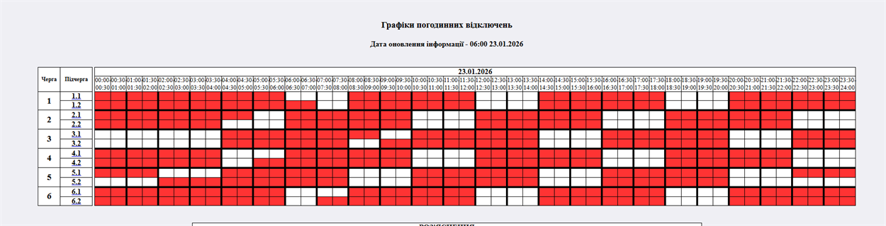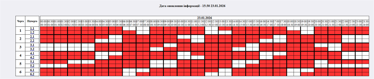 На 23.01.2026р. по команді НЕК "Укренерго" буде застосовано:
