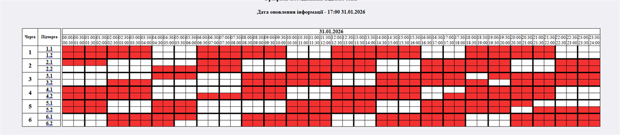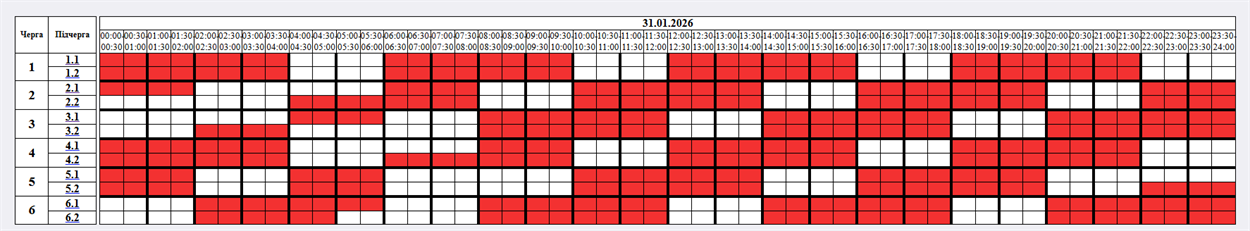 На 31.01.2026р. по команді НЕК "Укренерго" буде застосовано: