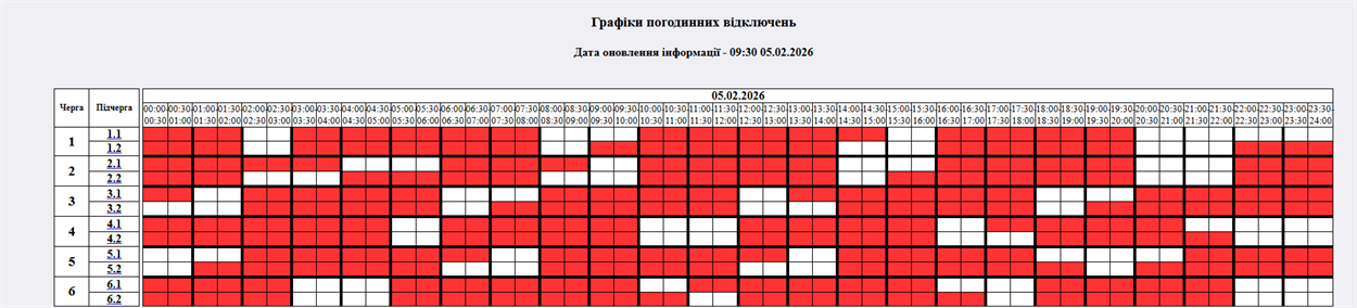 На 05.02.2026р. по команді НЕК "Укренерго" буде застосовано: