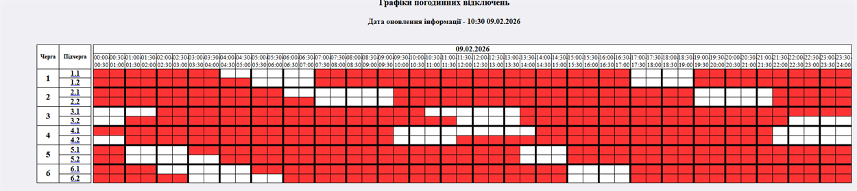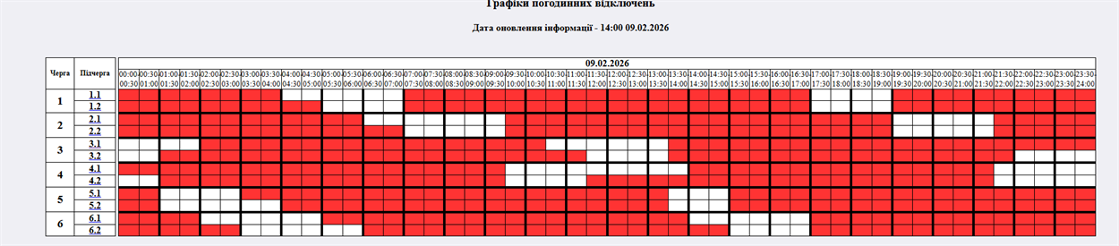 На 09.02.2026р. по команді НЕК "Укренерго" буде застосовано: