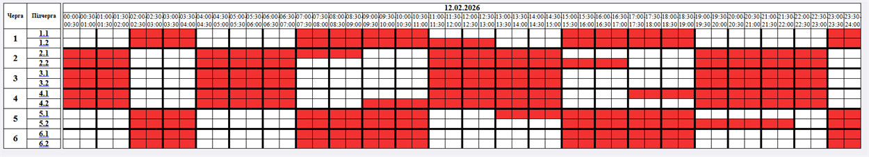 На 12.02.2026р. по команді НЕК "Укренерго" буде застосовано:
