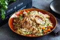 - Накрийте кришкою й тушкуйте на невеликому вогні близько 40 хвилин, поки крупа стане м’якою та вбере рідину.