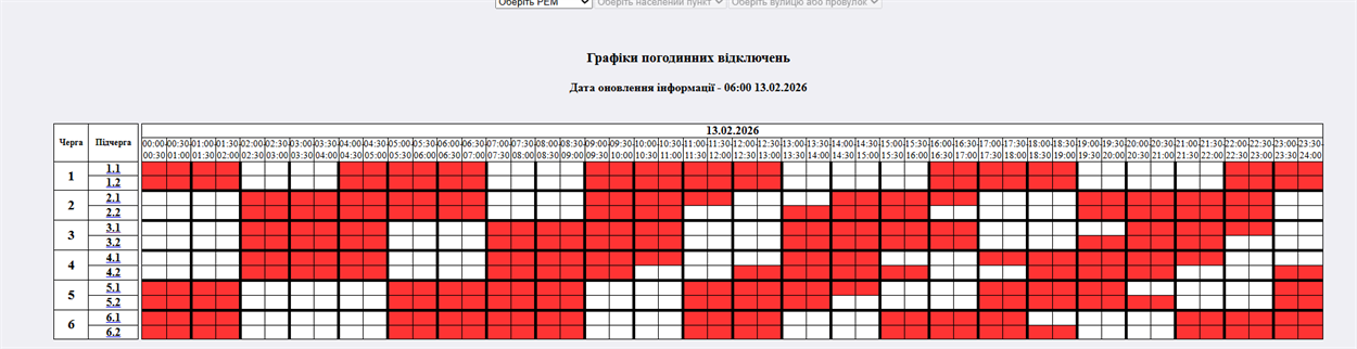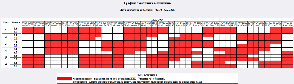 На 13.02.2026р. по команді НЕК "Укренерго" буде застосовано: