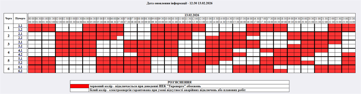 Дата оновлення інформації - 12:30 13.02.2026 року.