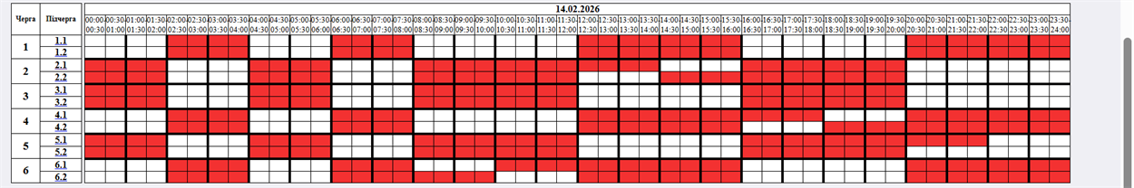 На 14.02.2026р. по команді НЕК "Укренерго" буде застосовано: