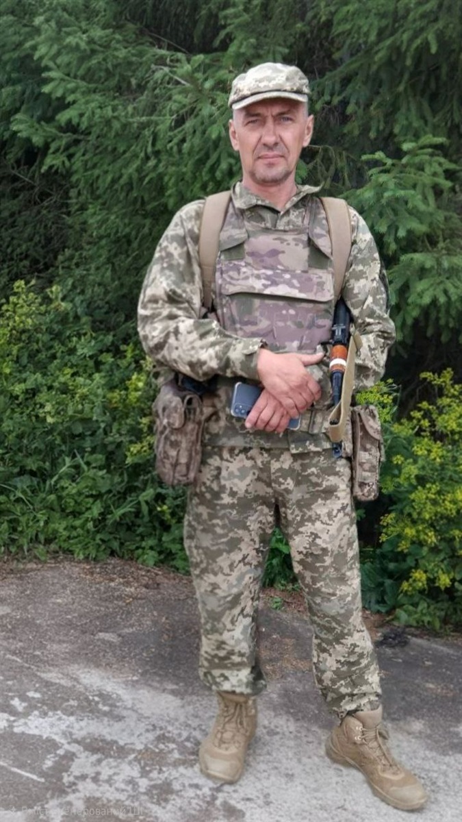 Віталій не служив у мирний час. Але з перших днів повномасштабного вторгнення росії в Україну (лютий 2022 року) просився у військо. Йому постійно давали відстрочку. Тоді він записався до добровольчого формування територіальної оборони й почав патрулювати місто – після основної роботи. Разом із друзями по 13–14 годин на день зводив укріплення: ставили бетонні огорожі, наповнювали мішки піском.