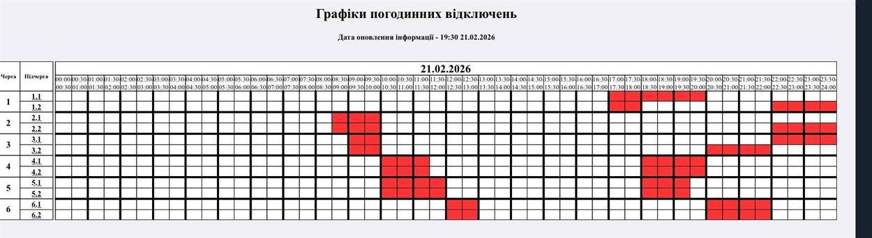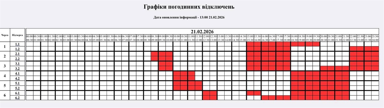 На 12:30 21.02.2026 р. НЕК "Укренерго" змінив застосування кількості черг: