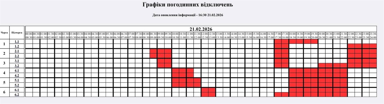 На 21.02.2026 р. по команді НЕК "Укренерго" буде застосовано: