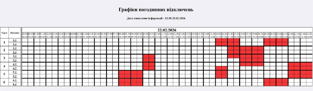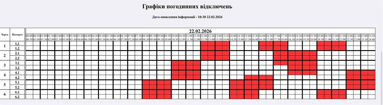 На 10:30 22.02.2026 р. НЕК "Укренерго" змінив застосування кількості черг: