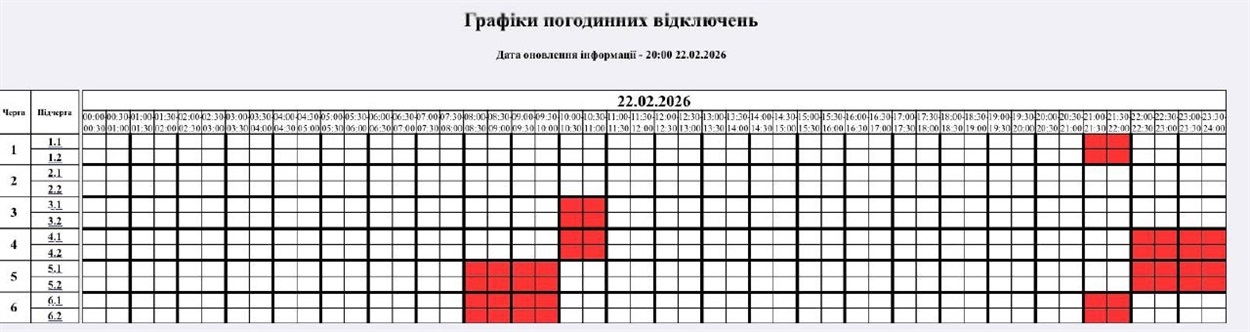 На 22.02.2026 р. по команді НЕК "Укренерго" буде застосовано: