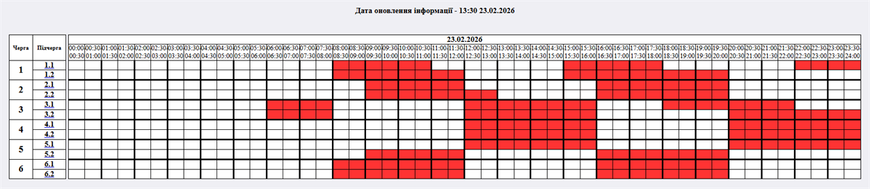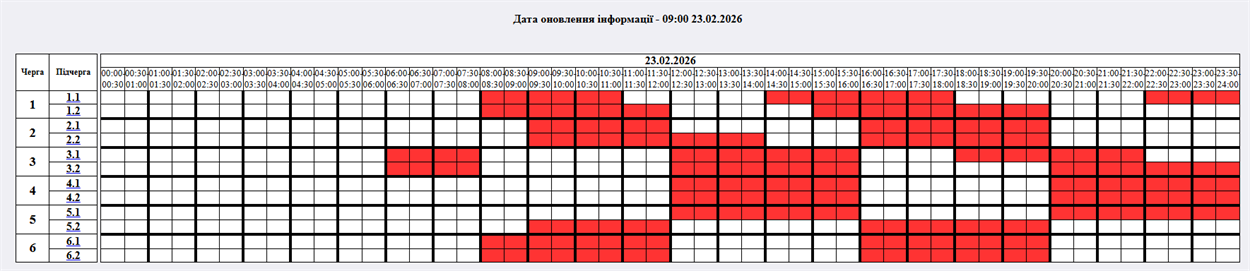 Станом на 07:30 23.02.2026 року НЕК "Укренерго" змінив застосування кількості черг: