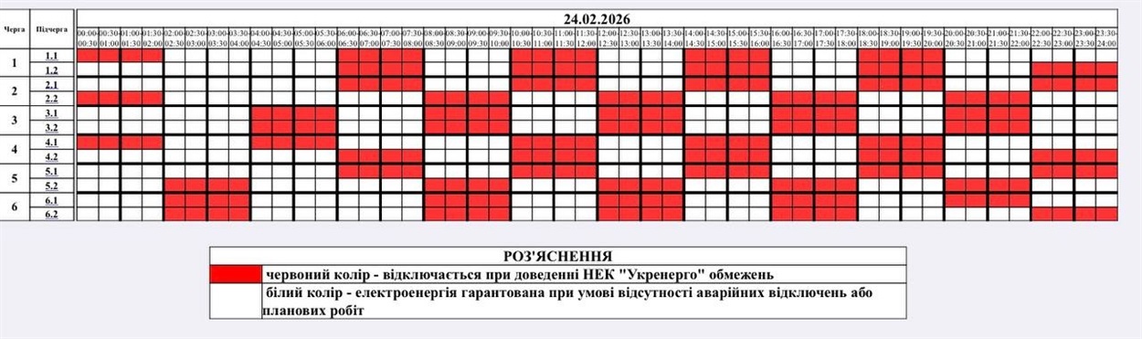 На 24.02.2026 року НЕК "Укренерго" змінив застосування кількості черг: