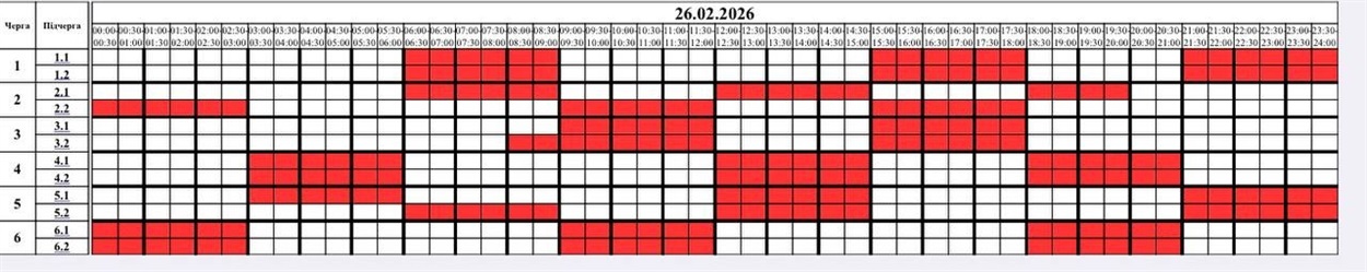 На 26.02.2026 року по команді НЕК "Укренерго" буде застосовано: