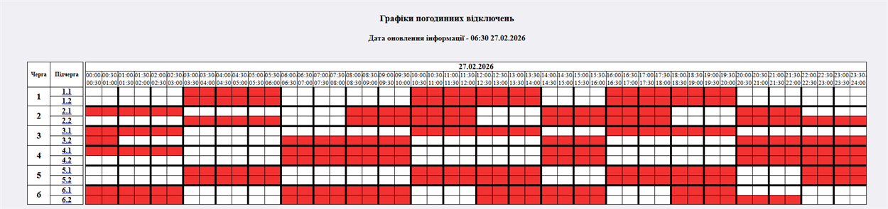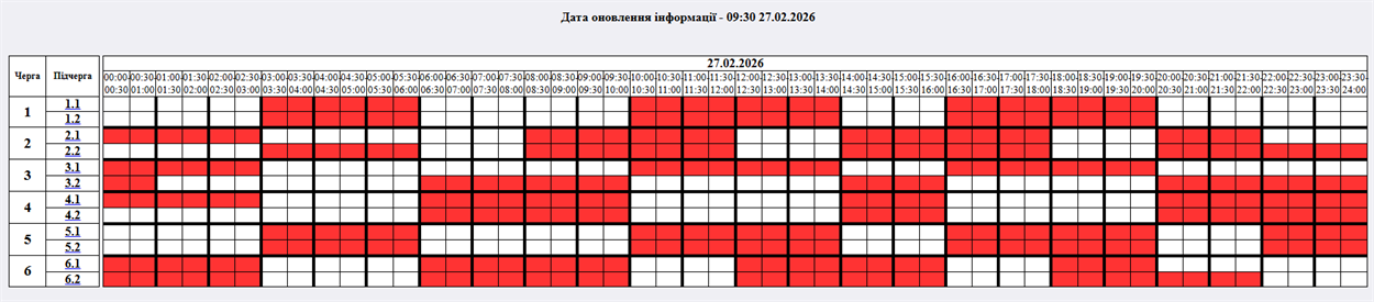 На 27.02.2026р. по команді НЕК "Укренерго" буде застосовано: