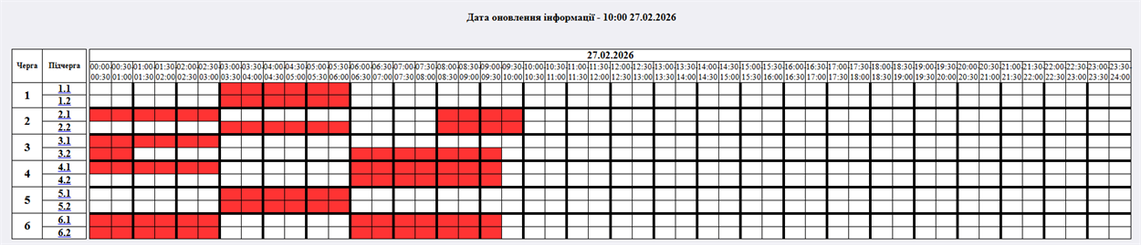 На 00:30 27.02.2026 року НЕК "Укренерго" змінив застосування кількості черг: