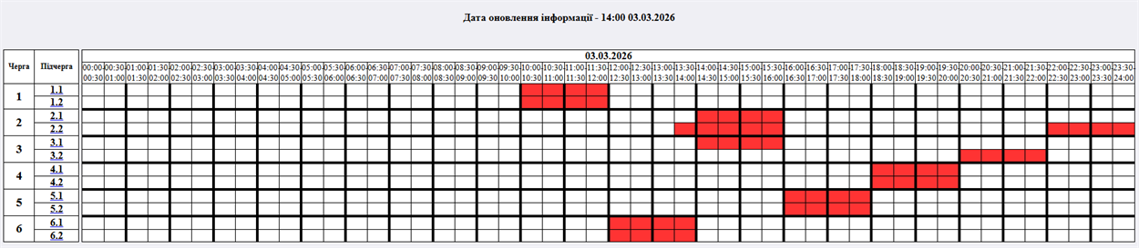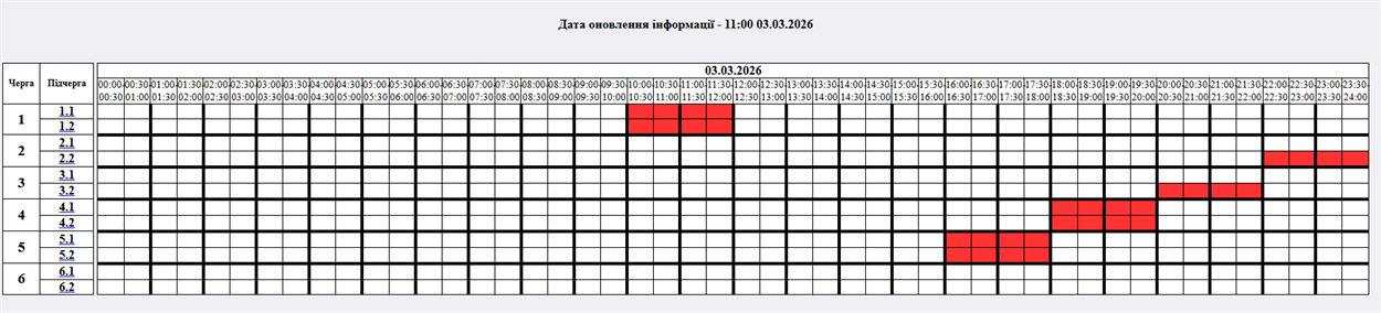 Станом на 09:30 03.03.2026 року НЕК "Укренерго" змінив застосування кількості черг: