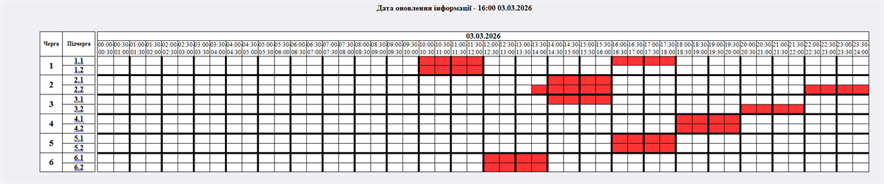 На 03.03.2026р. по команді НЕК "Укренерго" буде застосовано: