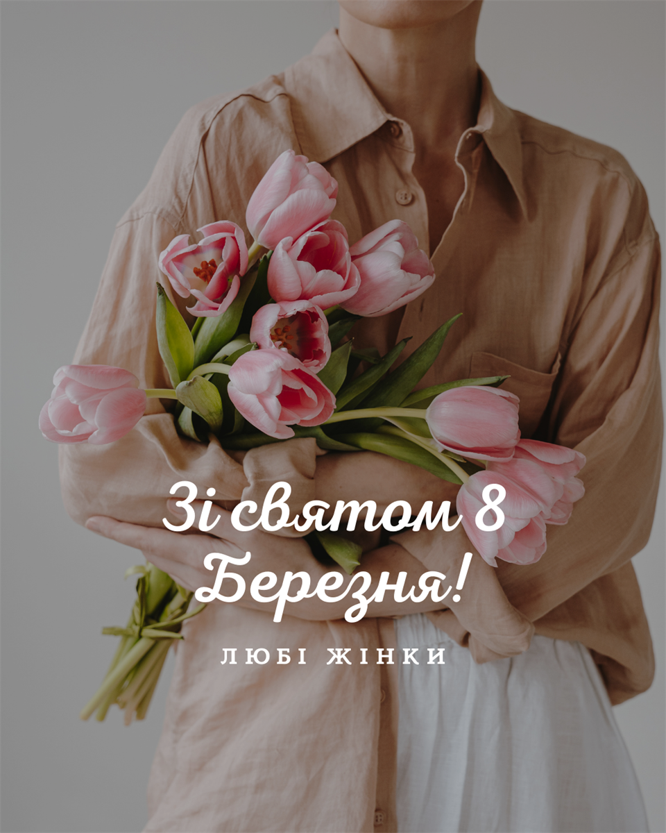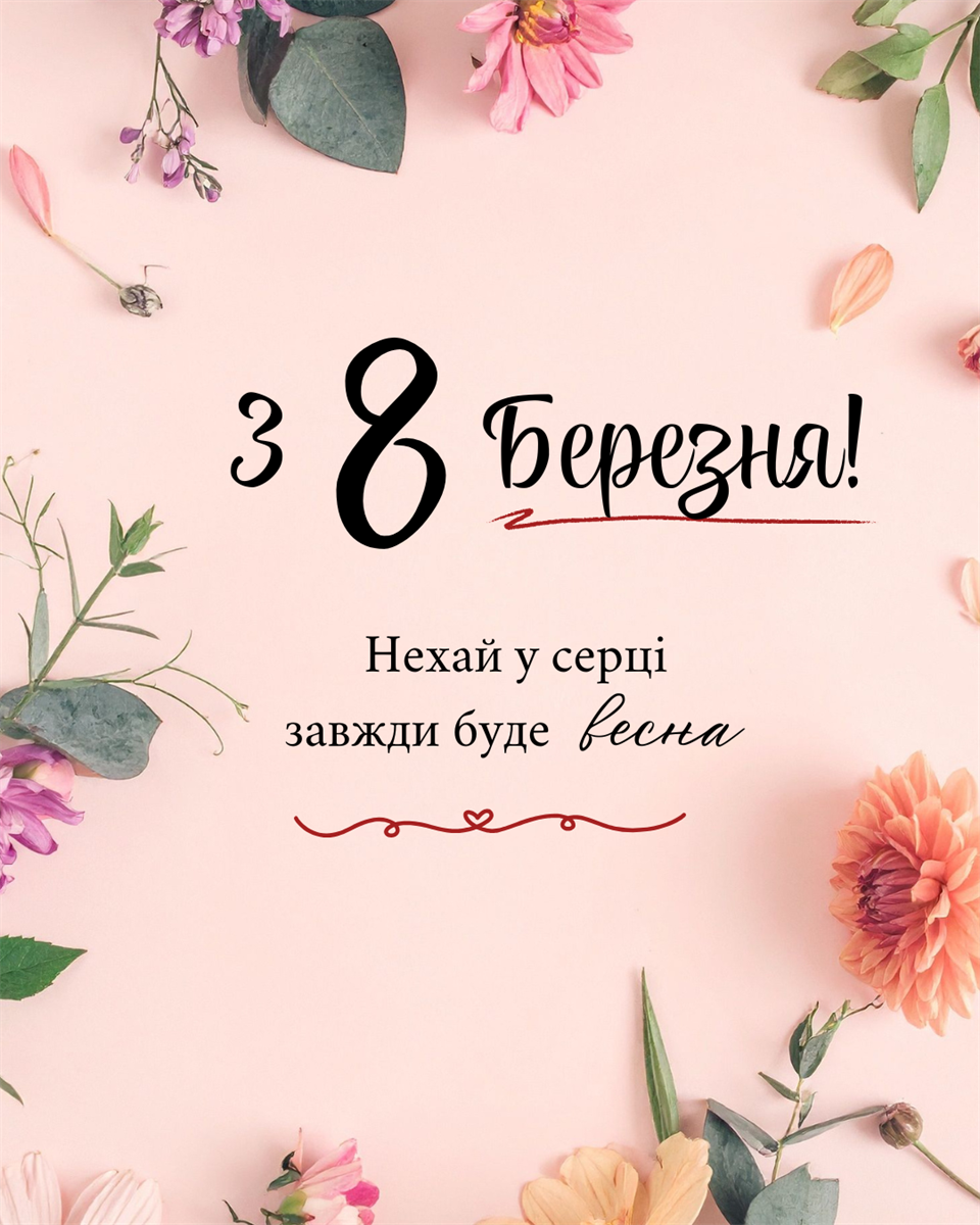 «Вітаю з весняним святом! Нехай робота приносить задоволення, а день – лише гарні новини та посмішки. З 8 березня!»