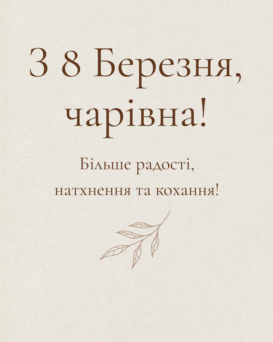 «З 8 березня, найкрутішій подрузі! Нехай цей рік принесе тобі все, про що мріяла – і ще трохи більше. Ти на це заслуговуєш!»