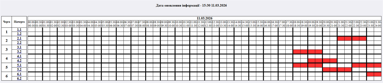 На 11.03.2026 року по команді НЕК "Укренерго" буде застосовано: